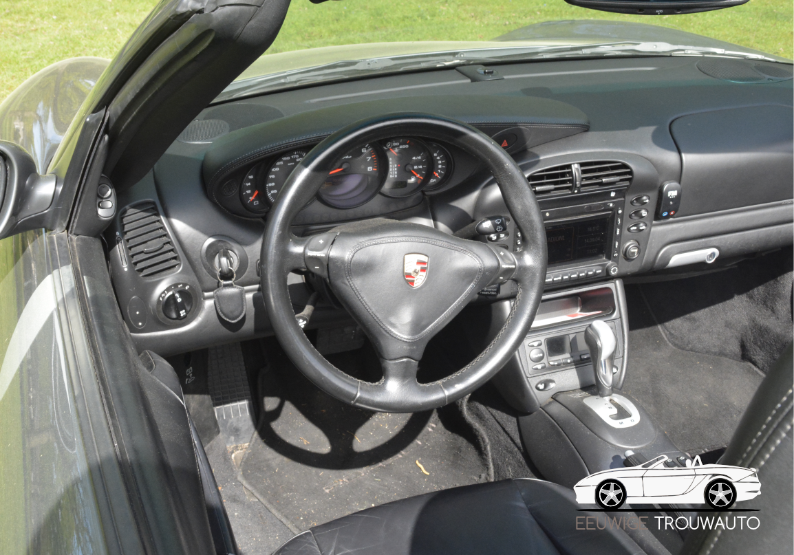 De Porsche 911 Turbo cabrio uit 2004 beschikt over een indrukwekkende 3.6-liter boxermotor met dubbele turbo's, die een verbazingwekkende 420 pk en 560 Nm koppel levert. Dankzij deze krachtbron sprint de auto in slechts 4,3 seconden van 0 naar 100 km/u en bereikt hij een topsnelheid van maar liefst 305 km/u. De geavanceerde vierwielaandrijving en het Porsche Stability Management (PSM) zorgen voor optimale tractie en controle, zelfs onder de meest veeleisende omstandigheden.